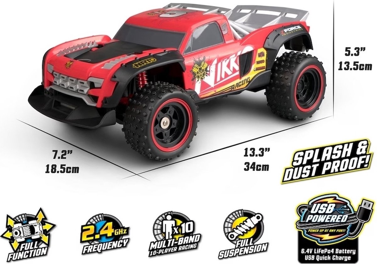 Ga op pad met het nieuwe spatwater- en stofbestendige chassis van de Nikko Pro Trucks™! Modder, zand, modder en zelfs sneeuw zijn geen uitdaging voor deze snelle racer. Met zijn afgedichte, waterdichte chassis, echt werkende vering, krachtige motor en snel oplaadbare USB-accu scheur je in een mum van tijd door elk terrein!