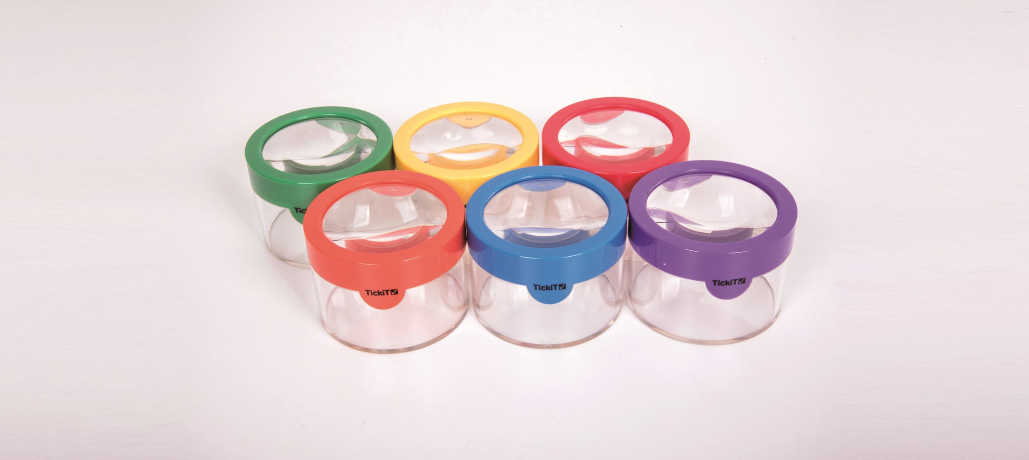 Tickit® Rainbow Viewers zijn een fascinerende manier voor je kind om veilig objecten uit hun natuurlijke omgeving te onderzoeken en te bekijken, zoals bladeren, aarde en insecten.