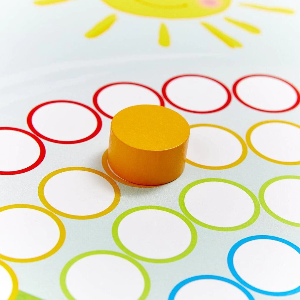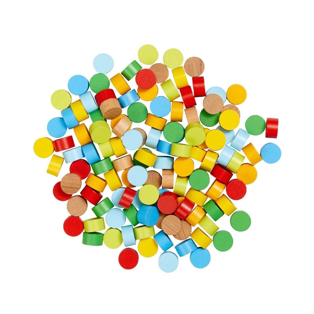 Er ontbreekt hier iets. . . Wie kan helpen de liefdevol geïllustreerde motieven met de gemakkelijk vast te pakken houten schijven te voltooien?