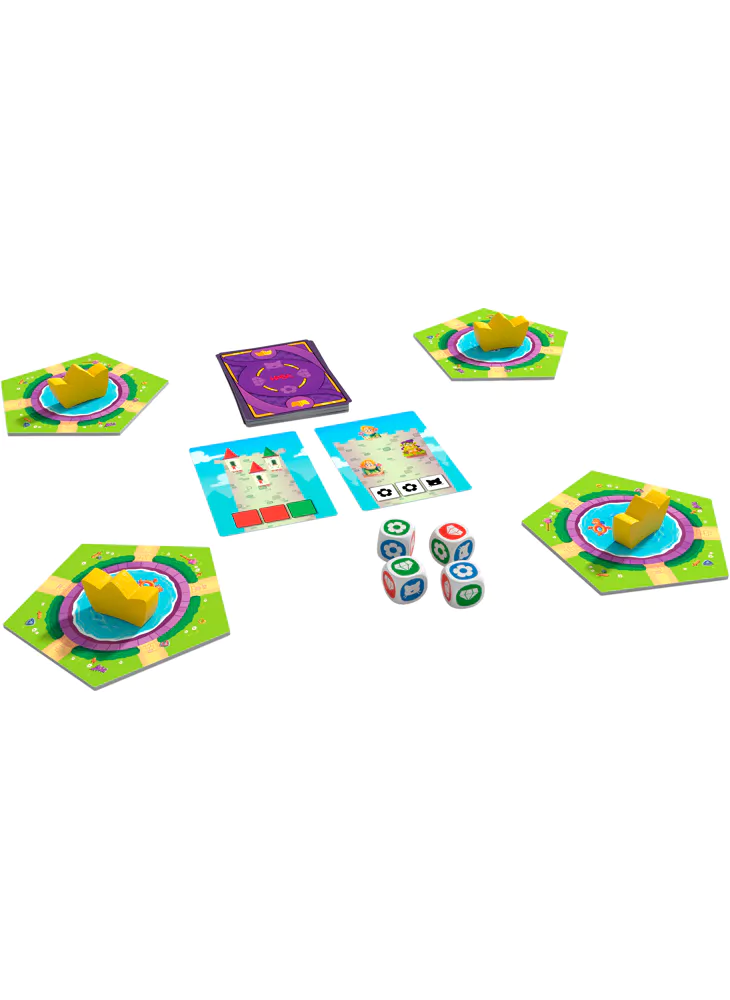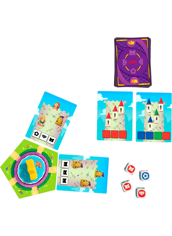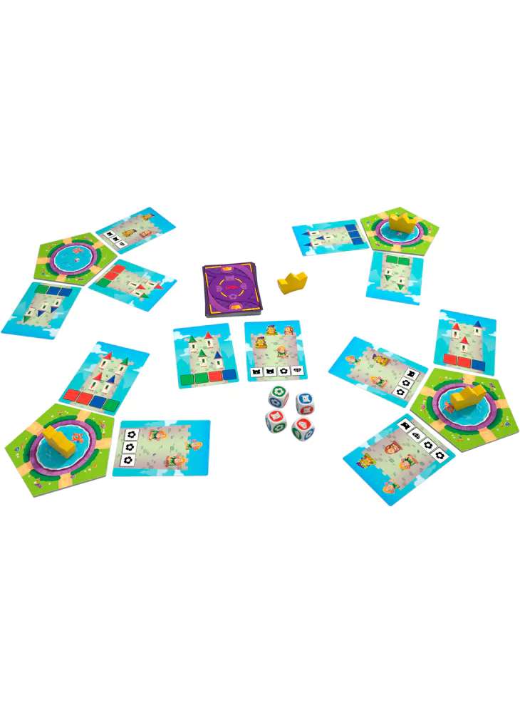 Wie met wat geluk met de dobbelstenen en de juiste tactiek zijn/haar kasteel als eerste af heeft, wordt dobbelkoning en wint.