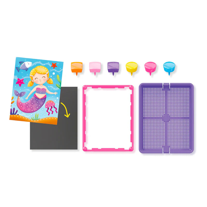 Quercetti insteek mozaïek prinses. Steek de kleurrijke pinnen in de geïllustreerde kaarten en maak spectaculaire mozaïeken. Gebruik de praktische koffer om alles op te bergen na het spelen. Geschikt vanaf 5 jaar.