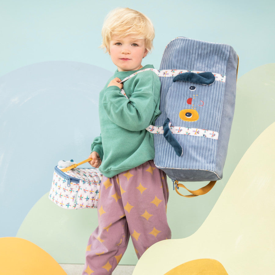 De Jules the Dog weekendtas is de perfecte metgezel om kleintjes kennis te laten maken met de vreugde van avontuur. Vanaf 2 jaar zal deze kinderweekendtas in de smaak vallen door de zachtblauwe kleur en het borduursel met de tekst "Jules the dog". Vol tederheid stelt het uw kind gerust tijdens zijn of haar eerste schoolreisje, sportdag, logeerpartijtje bij zijn of haar beste vriend(in) of zelfs bij zijn of haar grootouders. Het is ontworpen als een echte handbagagekoffer en combineert esthetiek en functionaliteit, maar is tegelijkertijd een lichte tas die perfect past op de schouders van de allerkleinsten. Deze reistas is geheel gemaakt van zacht en duurzaam polyester en combineert elegantie met robuustheid. Dankzij de brede ritsopening heeft elk kind snel toegang tot de inhoud. Zo kan elk kind zijn spullen gemakkelijk vinden! Dankzij de verschillende zakken (1 aan de binnen- en 1 aan de buitenkant) is een optimale organisatie gegarandeerd: kleding, dekbedden, boeken en kleine persoonlijke bezittingen vinden allemaal hun eigen plekje. Dit model is ontworpen voor flexibel dragen en is voorzien van twee stevige handvatten en een verstelbare katoenen schouderband. Zo kunt u de tas naar wens in de hand of over de schouder dragen, afhankelijk van de voorkeur en het comfort van uw kindje. Met zijn afmetingen van 45 x 23 x 25 cm voldoet deze kleine reistas aan de handbagagenormen van luchtvaartmaatschappijen en past hij gemakkelijk onder de stoel of in de kofferbak. Gemakkelijk te onderhouden en machinewasbaar op 30°C voor een onberispelijke hygiëne, zelfs na de meest bewogen avonturen. Compatibel met de toilettas Jules (ref. 84494), zodat u een bijpassende set kunt samenstellen voor al uw uitstapjes! Of u de tas nu gebruikt als weekendtas voor kinderen of als praktische reistas voor uw eerste uitstapje, de Jules the dog-tas combineert comfort en bruikbaarheid met een onweerstaanbare zachtheid. U denkt er vast al over na om deze leuke weekendtas van uw kind te lenen voor uw volgende uitstapje, toch?