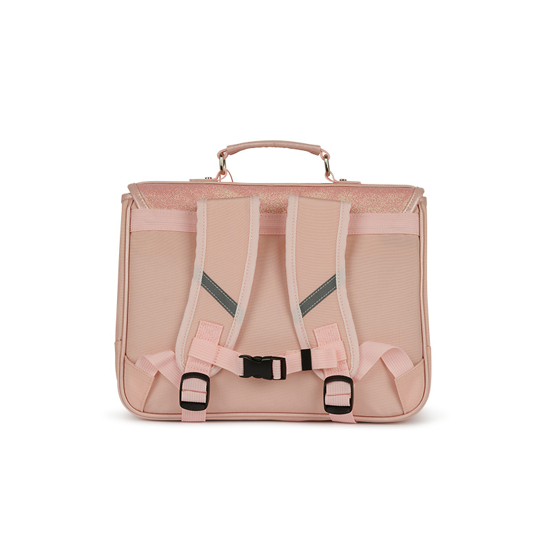 De Caramel & Cie schooltas is gemaakt van hoogwaardige, waterafstotende materialen en ontworpen voor intensief gebruik. Hij is zo licht mogelijk. De naden zijn verstevigd op de plekken waar de tas het snelst slijt, en de achterkant en zijkanten zijn ontworpen om de inhoud van de tas gedurende een schooldag te beschermen.