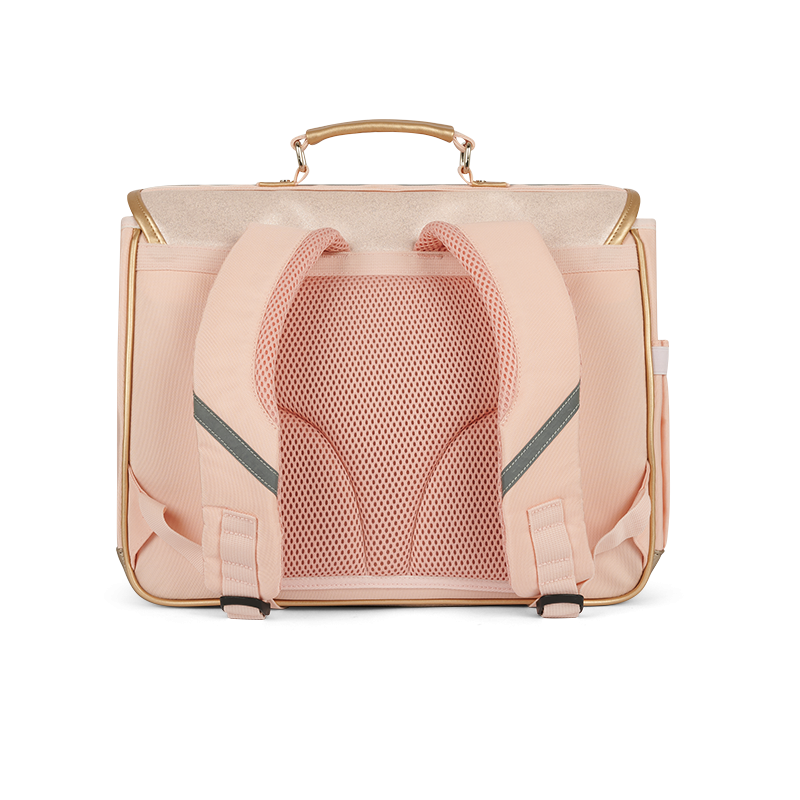 Voor het comfort van je kind hebben onze verstelbare schouderbanden een ergonomische S-vorm, geïnspireerd op wandeltassen. Het anatomische ontwerp van de rug is versterkt met een dikke laag schuim en honingraatgaas om vocht in de zomer af te voeren.