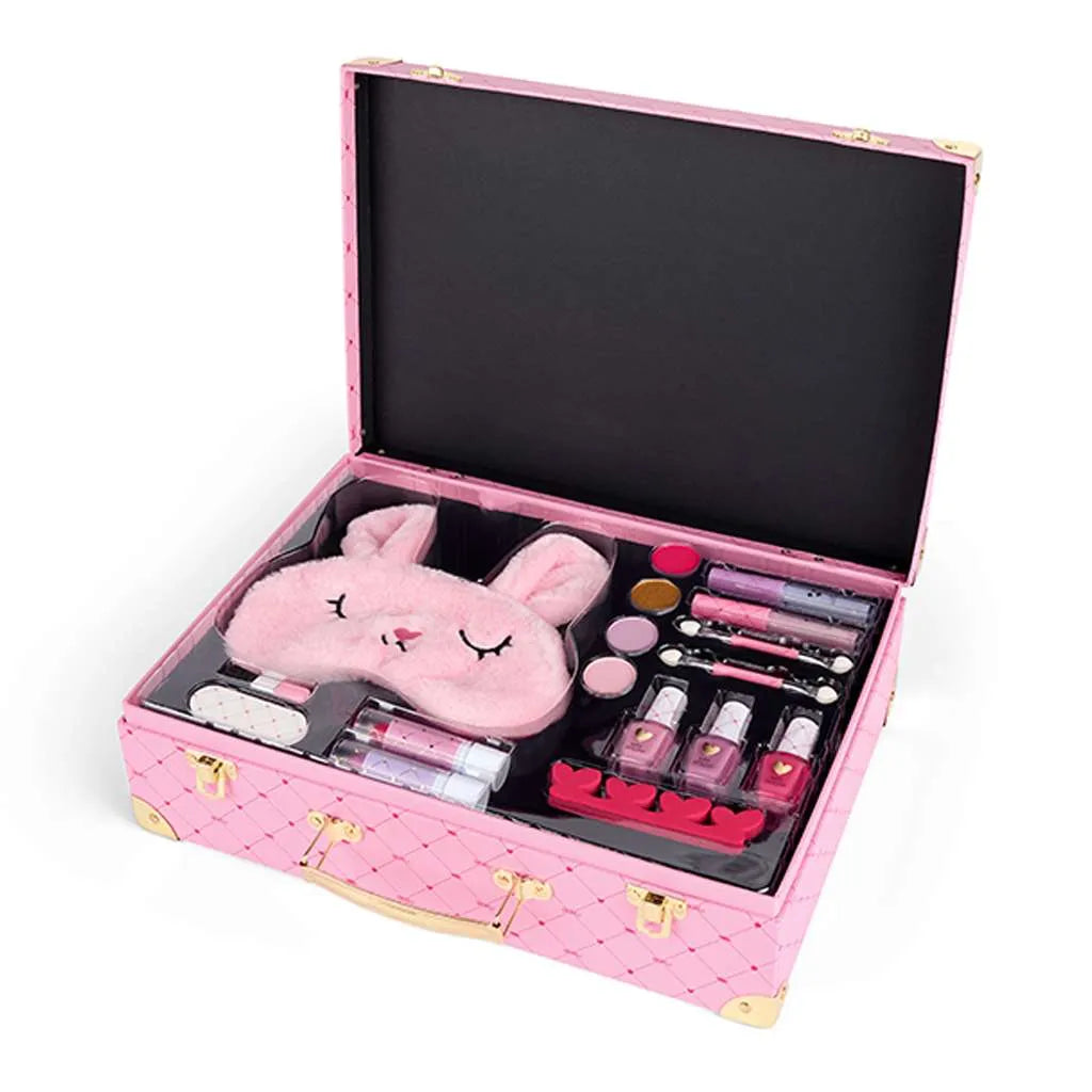 De luxe case bevat zelfs een zacht roze konijnenslaapmasker om helemaal in beauty-stijl te ontspannen. Dankzij de vrolijke kleuren en geurtjes is deze make-upkoffer een fantastisch cadeau voor kinderen die willen experimenteren met mode en beauty.