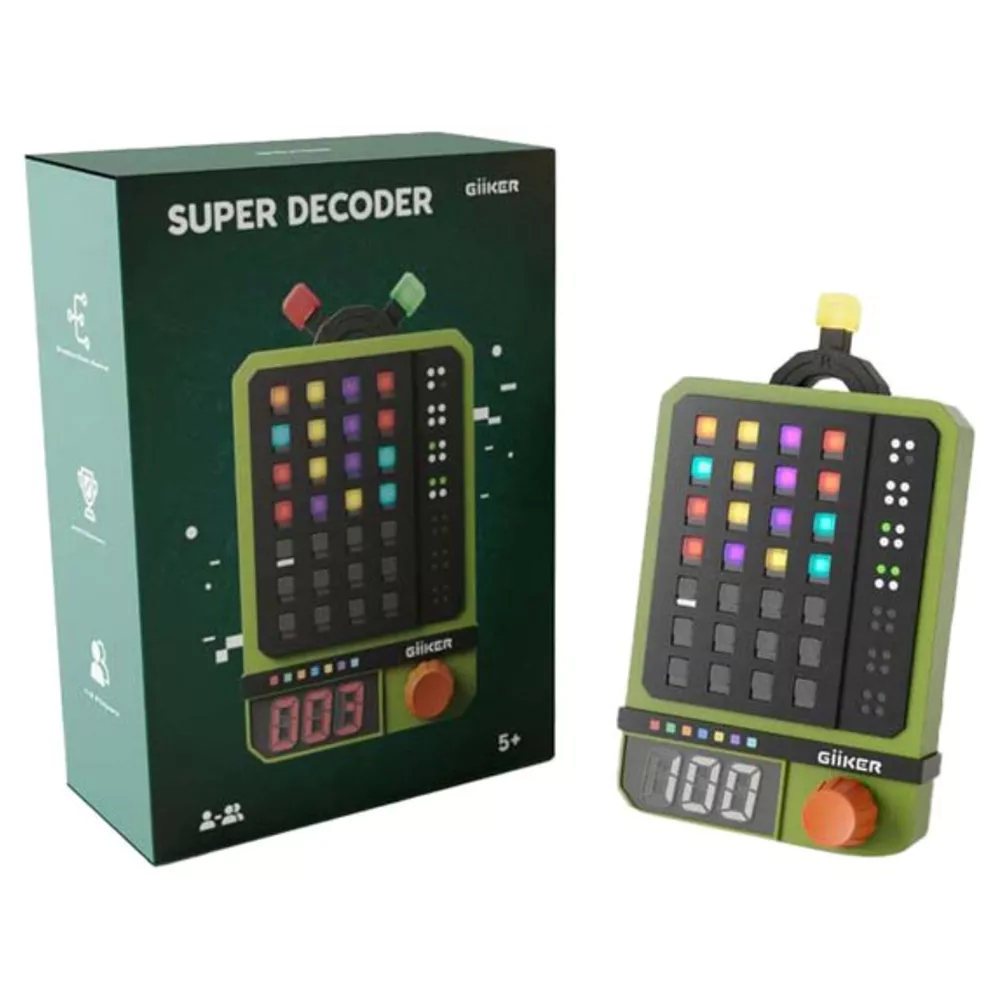 Ontdek de geheimen van codes kraken met de Giiker Super Decoder! Dit spannende en educatieve spel daagt je uit om logisch te redeneren, patronen te herkennen en verborgen combinaties te ontcijferen. Het is een soort mastermind deluxe – maar dan met een modern, elektronisch tintje. Elke ronde probeer je de juiste volgorde van kleuren of symbolen te achterhalen binnen een beperkt aantal beurten. Dankzij de visuele en auditieve hints weet je of je warm of koud zit. Ideaal voor kinderen én volwassenen die graag puzzelen met een tikkeltje spanning. Deze decoder houdt je urenlang geboeid en maakt van denken een echt avontuur!
