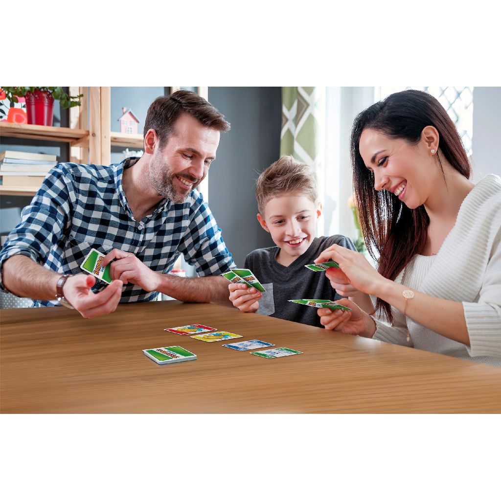 Skip-Bo Junior is een kaartspel van de makers van UNO, met vrolijke kleuren en leuke plaatjes van dieren. Het spel is eenvoudig en kindvriendelijk: wie als eerste al zijn kaarten heeft weggespeeld, wint. En bij deze versie zijn er 2 niveaus! Spelers leggen slim en strategisch passende kaarten van 1 tot 10 op de stapels in het midden van het speelveld en de eerste speler die al zijn kaarten heeft weggespeeld, wint. Op het tweede niveau worden aflegstapels toegevoegd aan de mix, zodat de uitdaging groter wordt naarmate kinderen beter gaan spelen. Een geweldig cadeau voor kinderen die van kaartspelletjes houden.