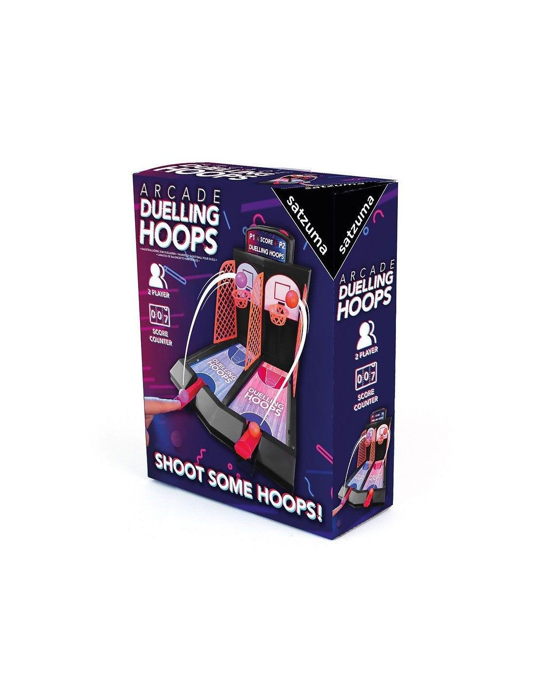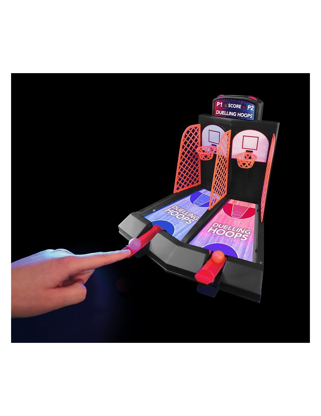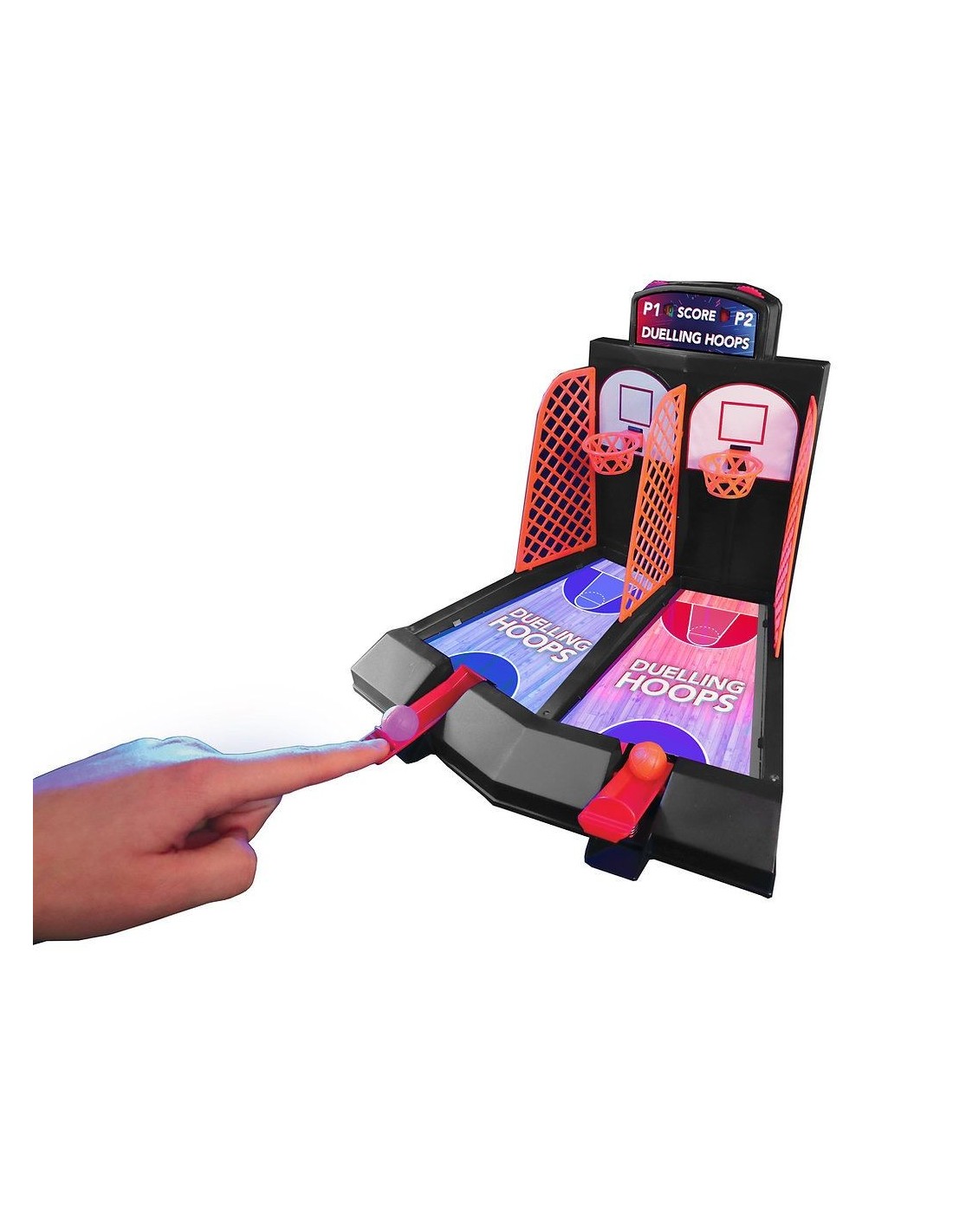 Daag je vrienden en familie uit voor een basketbalduel! De eerste die 12 punten scoort, wint in deze uitdaging, met twee (springveer)balwerpers, een scoreteller en 6 basketballen.