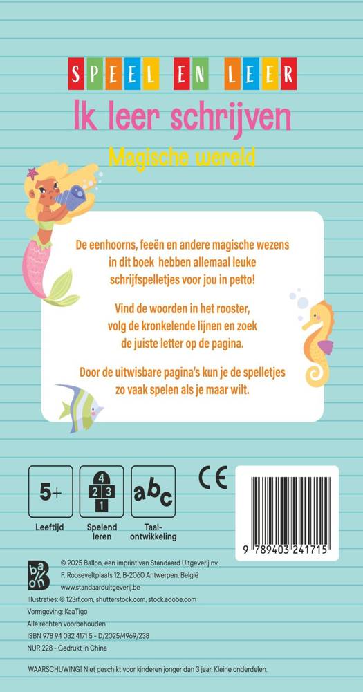 De magische wezens in dit boek hebben allemaal leuke schrijfspelletjes voor jou in petto! Zoek de letter p op de pagina, volg de kronkelende lijnen en verbind de juiste tekeningen. Door de uitwisbare pagina's kun je de spelletjes zo vaak spelen als je maar wilt. En door het handige formaat neem je dit boek overal mee naartoe!