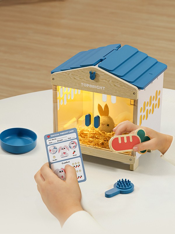 💗 Kleurveranderend hart: Mummy Bunny’s hart toont haar emoties. Door haar te voeren, aaien of verzorgen, verandert het hart naar groen als ze zich goed voelt.